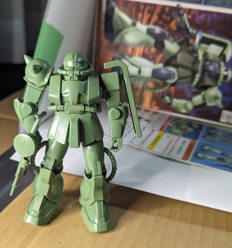 選んだのは エントリーグレードのザクⅡ。昔の金型で整形されているので、どこか懐かしい雰囲気が漂います。小学生の頃には買えなかった憧れのキットを、今なら思いっきり楽しめる。しかも、今回は オリジナルの配色&改造 に挑戦することにしました!